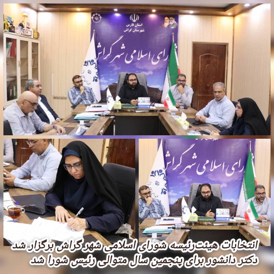 ششمین دوره انتخابات هیئترئیسه شورای اسلامی شهر گراش روز چهارشنبه ۲۲ مرداد ۱۴۰۴ با حضور اعضای شورا و با نظارت بخشدار مرکزی و نماینده فرماندار در سالن شورای شهر برگزار شد.